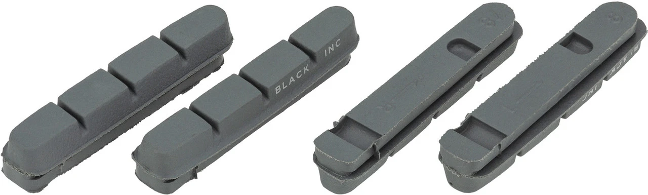 Die Bremsgummis von Black Inc besitzen eine spezielle Belagsmischung für Carbonfelgen. So können leichtgewichtigere Rennräder mit Felgenbremsen trotzdem mit High-end-Laufrädern aus Carbon gefahren werden, ohne dass das Bremsverhalten beeinträchtigt wird.