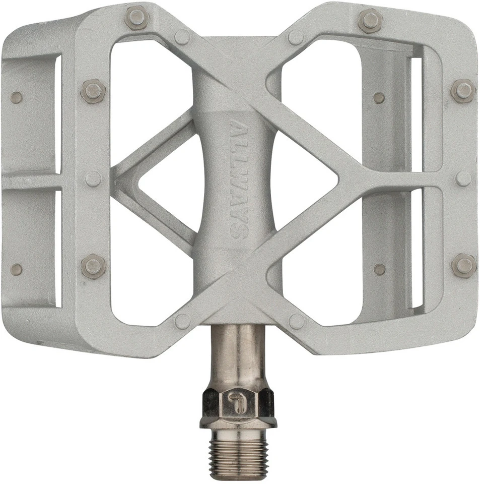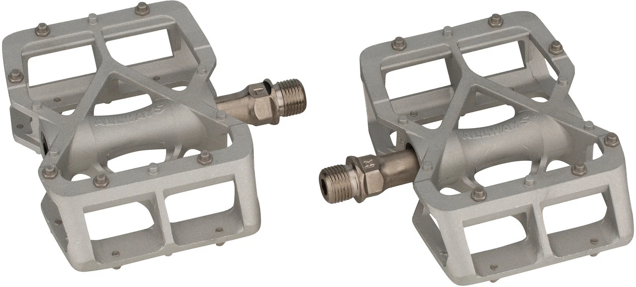 Die ALLWAYS Plattformpedale von MKS halten, was sie versprechen: Auf allen Wegen und jederzeit sind sie mit Dir unterwegs. Die leicht konkaven Pedalflächen mit den flexibel positionierbaren Pins sind besonders lang und bieten Deinen Schuhen Raum für verschiedene Fußpositionen. Durch die Dreifachlagerung läuft die Achse außerordentlich reibungslos.