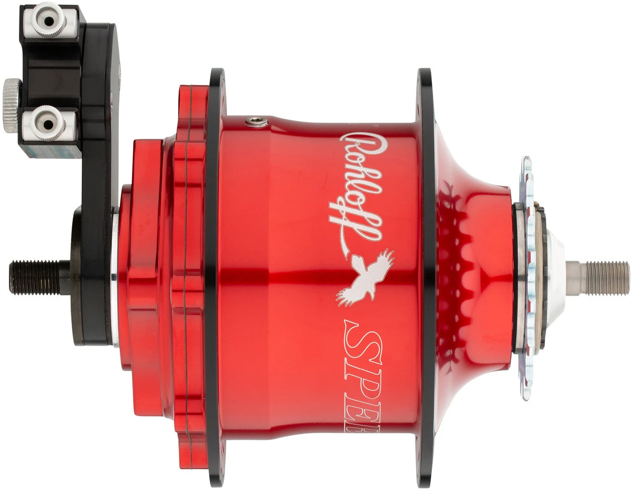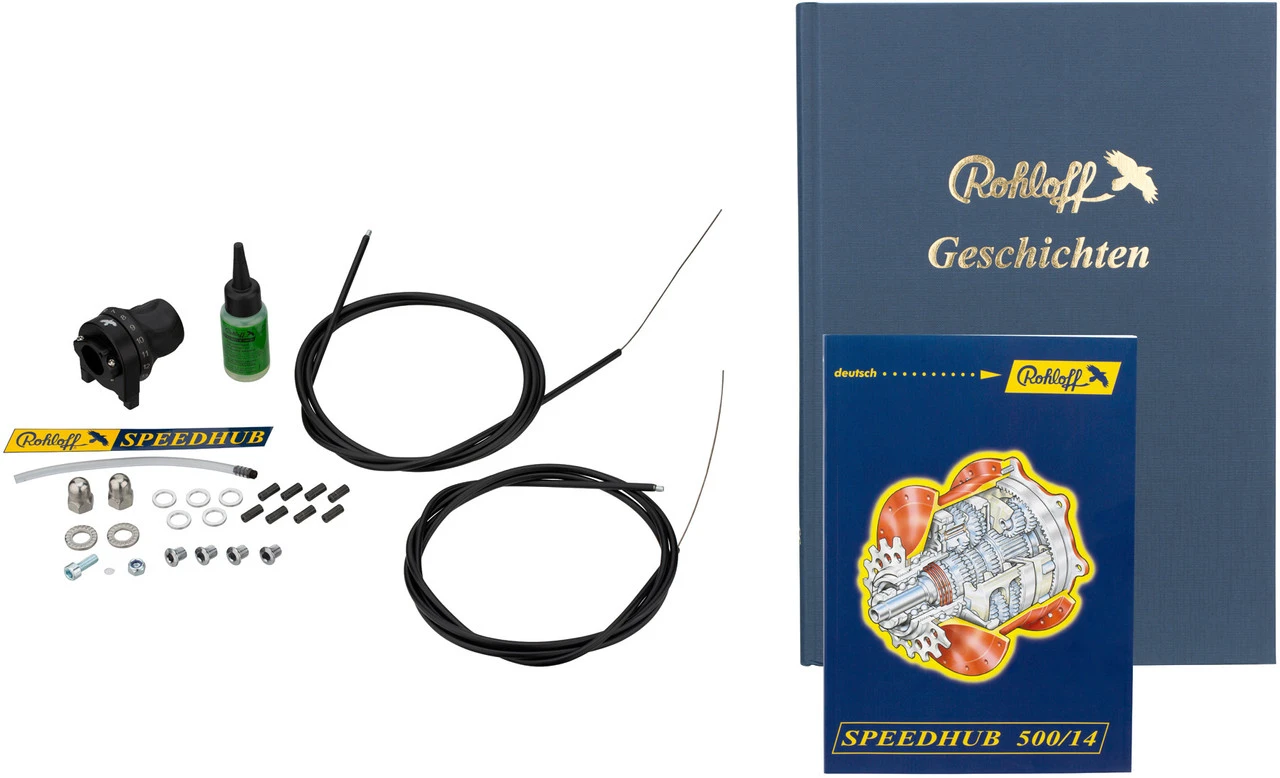 Spezifikationen:Serie:Speedhub 500/14Einsatzbereich:Touring/Trekking, CityGänge:14Bremssystem:Felgenbremse oder DiscAchssystem:10 mm Schraubachse (TS = Touring Schraubachse)Einbaubreite:135 mmLochzahl:32 Loch, 36 LochTechnische Daten:Übersetzungsbandbreite:526 %Material:Aluminium, StahlAchslänge:171 mmSpeichengröße:2,7 mmLochkreisdurchmesser:100 mmFlanschbreite:3,2 mmFlanschabstand:58 mm (29 mm/29 mm)Versatz:0 mmFeatures:extrem wartungsarm und robustperfekte Verarbeitung (zu 99 % Made in Germany)gleichmäßiges Schalten (13,6 %) mit Schaltdrehgriff, auch im Stand95 – 99 % Effizienz, 14 effektive Gänge, keine Überlappungenkompatibel mit 1/2″ x 3/32″ Fahrrad-Schaltungsketten57 mm Kettenliniekompatibel zu Gates Carbon Drive Riemenantrieb25 ml maximale Ölfüllungmaximales Eingangsdrehmoment 130 Nminklusive 16-Zähne-Steckritzel (13-19 Z und 21 Z optional erhältlich, Schraubritzel nur noch als Restposten)kleinster zulässiger Übersetzungsfaktor für Solofahrer bis 100 kg = 1,9 (40/21, 36/19, 34/18, 32/17, 30/16, 28/15, 28/14, 26/13)kleinster zulässiger Übersetzungsfaktor für Fahrer über 100 kg = 2,5 (53/21, 48/19, 45/18, 42/17, 40/16, 38/15, 36/14, 34/13)Ausführungen:Typ 1: TS