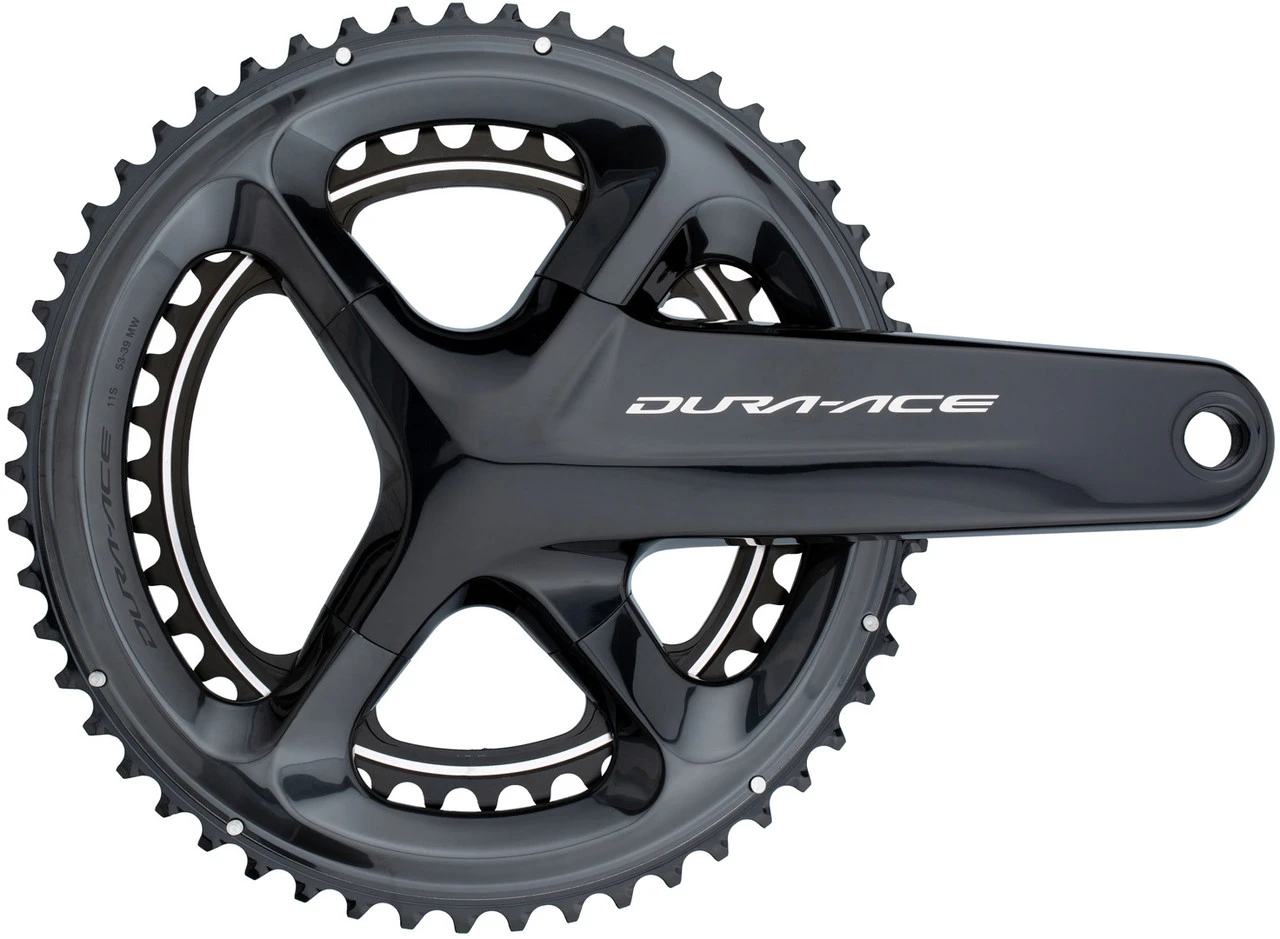 Spezifikationen:Einsatzbereich:Road, Triathlon & Time TrialKompatibilität:Shimano 2×11-fachKettenblattbefestigung:110 mm Lochkreis, 4-Arm asymmetrischTechnische Daten:Serie:Dura-Ace R9100Material Kurbelarme:AluminiumMaterial Kettenblätter:Aluminium, Carbon (CFRP) / AluminiumMaterial Achse:StahlAbstufung:34-50, 36-52, 39-53, 42-54, 42-55Kurbelarmlänge:165,0 mm, 170,0 mm, 172,5 mm, 175,0 mm, 177,5 mm, 180,0 mmKettenlinie:43,5 mmQ-Faktor:146 mmAchsdurchmesser:24 mmKompatible Gehäusebreite (bei BSA-Innenlager):68 mmInnenlager (empf.):BB-R9100 oder SM-BB92-41B Pressfit Hollowtech II (nicht im Lieferumfang)Kette (empf.):HG-EV 11-fach, HG-X11 (bspw. CN-HG901-11)Kompatibilität:Schaltgriff:ST-R9100, ST-R9120, ST-9001, ST-9000, SL-BSR1, ST-R8000, ST-R8020, ST-R8025, ST-6800, ST-5800, ST-R7000, ST-R7020, ST-R7025, ST-RS685, ST-RS505, ST-U5060, SL-RS700, SL-U5000, ST-RX810, ST-RX600, ST-R9150, ST-R9160, ST-R9170, ST-R9180, ST-9070, SL-9071, ST-R8050, ST-R8060, ST-R8070, ST-6870, ST-6871, ST-R785, ST-RX815Umwerfer:FD-R9100, FD-R8000, FD-5801, FD-R7000, FD-R9150, FD-R8050Innenlager:BB-R9100, SM-BB9000, SM-BBR60, SM-BB6700, SM-BB5700, BB-RS501, BB-RS500, SM-BB4600, SM-BB92-41B, SM-BB72-41B, SM-BB71-41B, BB-RS500-PBKette:CN-9000, CN-6800, CN-HG901-11, CN-HG701-11, CN-HG601-11, CN-LG500Features:optimale Kraftübertragung: optimales Verhältnis von geringem Gewicht und Effizienz4-Arm-Kurbelgarnituran rennspezifisches Scheibenbremssystem angepasstoptimiertes Verzahnungsprofil für breitere Teilung„Rider Tuned“-Abstufungsoptionenlegendäres Designhohlgeformte Kurbelarme (Hollowtech)hohlgeformtes großes Kettenblatt (Hollowglide)Kurbelarme und Kettenblätter eloxiertKettenblattschrauben aus eloxiertem AluminiumTechnologien:Hollowtech II